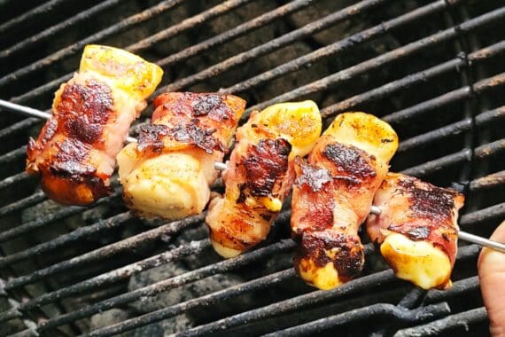 Steek de Berloumi Bacon Bites op een spies en grill ze op hoog vuur op de barbecue. Lak ze op het einde met een beetje honing, confituur, barbecuesaus of zoete sojasaus.