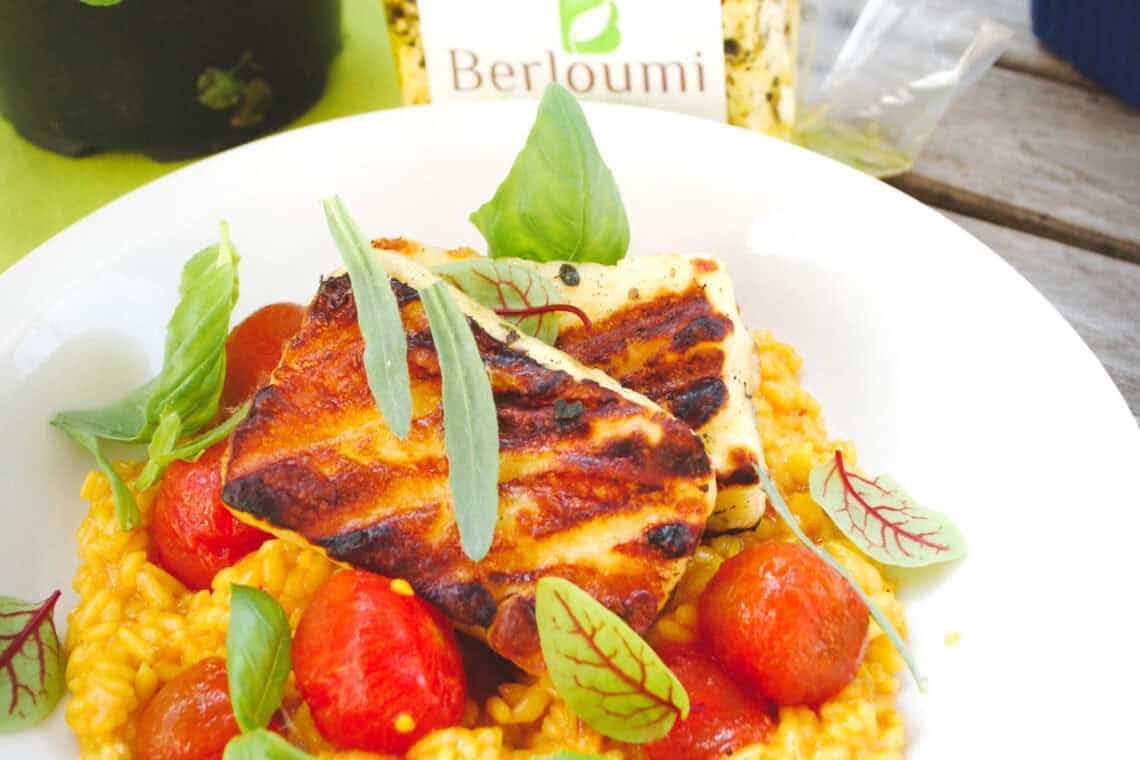 Bij een risotto met halloumi denken we misschien eerder aan de winter. De fleurige saffraan, de smaakbommetjes van kerstomaatjes en de gegrilde Berloumi uit onze Zuivelarij beslissen daar echter anders over.
