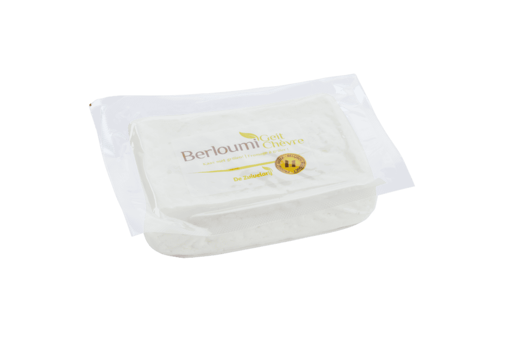 De textuur van onze geitenmelk Berloumi is vergelijkbaar met die van de gewone Berloumi. Al is de Berloumi van geitenmelk iets minder vet, een beetje minder squeaky en zit er een klein geitenkaasgeurtje aan. Je kan hem bereiden net zoals onze Berloumi in dezelfde recepten. De geitenmelk halen we bij de collega’s van geitenkaasboerderij ’t Leenhof in buurdorp Zele of bij geitenboerderij Klaverlochting in Impe.