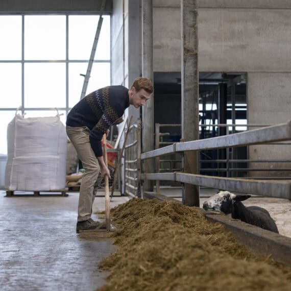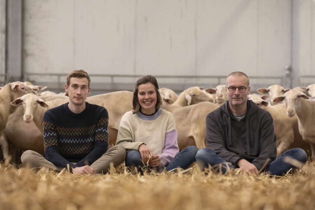 “Ons bedrijf is volledig grondgebonden, we kopen alleen krachtvoer en enkele bijproducten zoals bierdraf en bietenpulp. Alle geproduceerde mest wordt gebruikt om onze akkers te bemesten en onze ruwvoeder teelten te laten groeien, we hoeven geen mest te verkopen aan andere bedrijven. Hierdoor is onze cirkel zo goed als volledig rond. Verder is onze stal volledig gebouwd volgens de biologische normen: er is voldoende ruimte, licht en lucht. Bovendien wordt de stal klimaatgeventileerd en is het dak geïsoleerd. Ook is er voldoende ruimte rond de stal om onze schapen buiten te laten grazen wanneer het weer en de bodem het toelaten.”