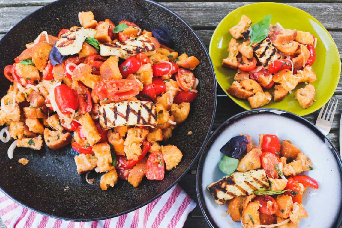 Panzanella is een authentieke Italiaanse broodsalade. Oorspronkelijk zaten voornamelijk uien in de salade maar vandaag kan er zowat alles in. We beginnen met de basis, een panzanellla met rijpe tomaten. Vervolgens gaan we helemaal los met een watermeloen en perzik panzanella.