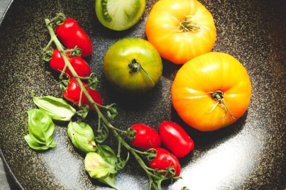 Door de tomaten te zouten lekt een deel van het vocht weg en wordt hun smaak intenser. Het tomatenvocht gebruiken we nadien in de vinaigrette. Kies de beste tomaten die je kan krijgen en maak deze salade enkel in het tomatenseizoen.