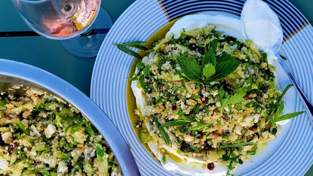 Quinoa salade met geschaafde bloemkool, groene appel en Berloumi