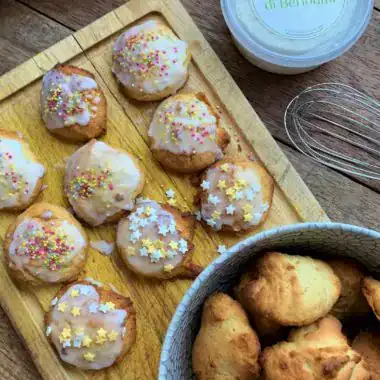 Deze ricottakoekjes zijn eigenlijk kleine cakejes. Ricottakoekjes zijn een Italiaanse kerstspecialiteit. Maar omdat wij elke dag verse ricotta hebben maken we ze gewoon elke dag.